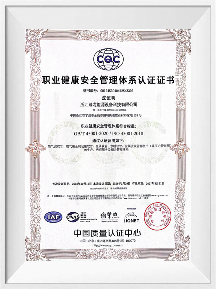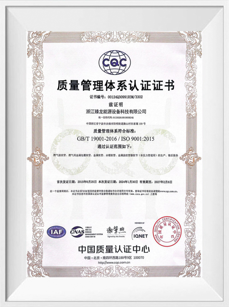 Zhejiang Zhenlong Energy Equipment Technology Co., Ltd. je tvrtka koja se bavi istraživanjem i razvojem, proizvodnjom i preradom energetske opreme; Mi smo poduzeće koje proizvodi, obrađuje i kombinira industriju i trgovinu metalnim crijevima, cjevovodima za prirodni plin, vodovodne opreme, sanitarne posude, ventila, plastičnih proizvoda i hardvera. Naša tvrtka nalazi se u Yuyau, Ningbo, Zhejiang, koja pokriva površinu od 40 hektara s tvorničkom zgradom od 30000 četvornih metara. Imamo 30 proizvodnih linija zavarivanja i formiranja, 2 neprekidne linije za proizvodnju vodikovih peći u čvrstom taljenju i opreme za testiranje poput analize metalnog materijala izravnog spektrometra za čitanje, ispitivača zatezanja protoka itd. Strogo implementiramo sustav upravljanja kvalitetom ISO9000: 2008 i držimo licencu za proizvodnju posebne opreme Republike Kine (PRILOČA PLJUČNOG PIJENA) i CERTIFIFIKACIJE EU CE. Član smo Kineskog udruženja za urbani plin. Tvrtka ima jak tim za istraživanje i razvoj, dizajn i proizvodni tim kako bi kupcima pružio sigurnu cijevi i sveobuhvatnu uslugu prije prodaje i nakon prodaje. Zhejiang Zhenlong Energy Expacement Technology Co., Ltd. potječe iz iskrene suradnje s prijateljima u zemlji i inozemstvu, radeći zajedno na stvaranju sjaja.